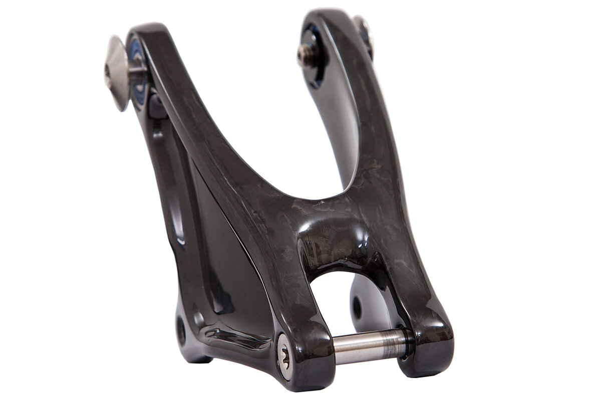 Der Set beinhaltet: Carbon Umlenkwippe, neue größere Rillenkugllager mit voller Fettpackung, spezielle Titan Schrauben zur Befestigung am Rahmen und ein neuer Titan Dämpferbolzen.
